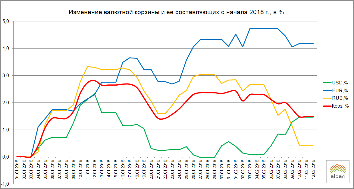 Всего с начала года доллар подорожал на 1,47%, евро подорожал на 4,18%, а российский рубль подорожал на 0,43%. Стоимость валютной корзины выросла за это время на 1,48%.