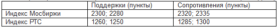 Индексы Мосбиржи и РТС в понедельник консолидировались, располагаясь выше средних полос Боллинжера дневных графиков (2290 и 1270 пунктов). Технические индикаторы в целом дают нейтральные сигналы – нельзя исключать нисходящей коррекции индексов ближе к поддержкам.