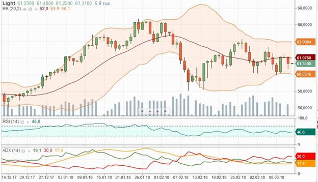 Нефтяные котировки с утра почти не изменяют своих позиций после падения днем ранее, в ходе которого цены оказались ниже важных сопротивлений (65,45 доллара для Brent и 62 доллара для WTI). Давление на рынок продолжали оказывать опасения роста нефтедобычи в США. Кроме того, в рамках ОПЕК наблюдаются разногласия относительно желаемого уровня цен, что также порождает неопределенность. Во вторник вечером прогнозы по запасам нефти и нефтепродуктов опубликует Американский институт нефти.