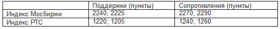 Индексы Мосбиржи и РТС во вторник продолжили безыдейную торговлю, оставаясь ниже средних полос Боллинжера дневных графиков (2280 и 1260 пунктов), но при этом удерживая и ближайшие поддержки. Индексы по-прежнему обладают потенциалом краткосрочного снижения, а вот для возобновления роста уверенности “быкам” пока не достает.