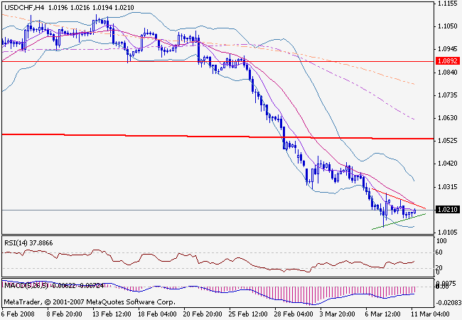 Пара консолидировалась. Торговля ведется в краткосрочном сужающемся треугольнике. После прорыва 1,0160 франк достигнет паритета к доллару. Индикаторы сигнализируют о перекупленности франка. Волатильность низкая. В текущую сессию осторожно ожидаем роста франка. Ближайшие цели: 1,0170-1,0150/1,0120/1,0070. Альтернативный вариант: 1,0220/1,0250/1,0290.